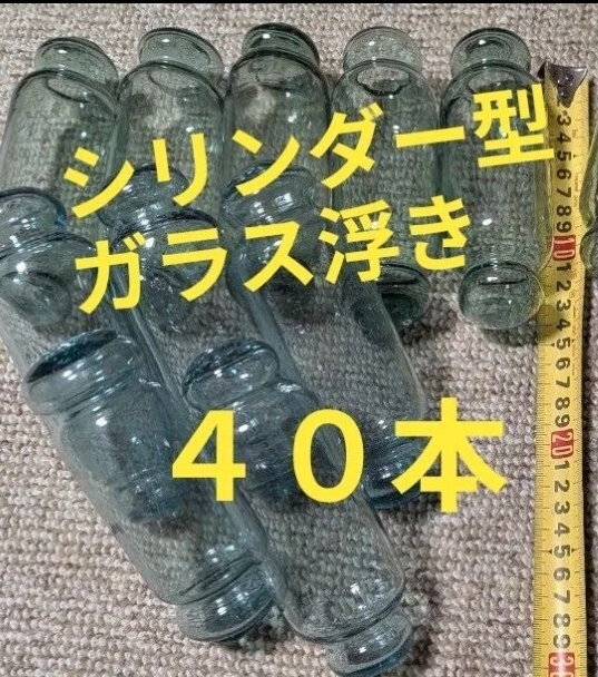 - シリンダー浮き★40本 長さ約15cm ガラス浮き 北海道漁師保管品 昭和 希少品