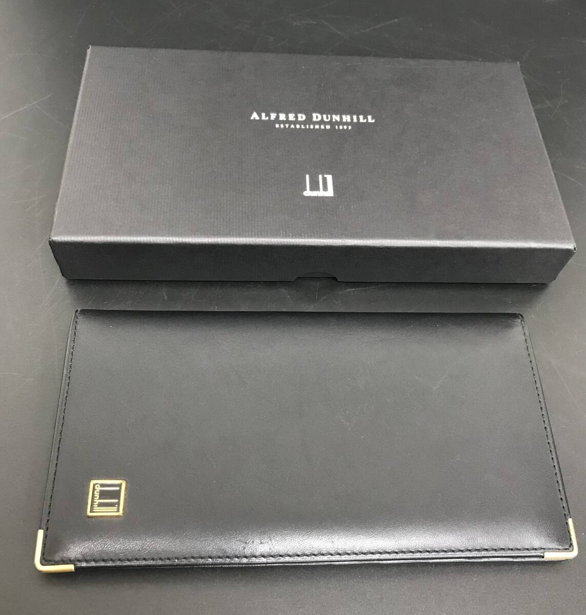 > N660 ダンヒル ALFRED DUNHILL レザー 二つ折り 長財布 箱付き ブラック系 黒 財布 メンズ 男性用