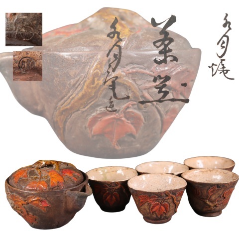 - 蔵出し品 永月焼 水月 浮彫花文 花器
