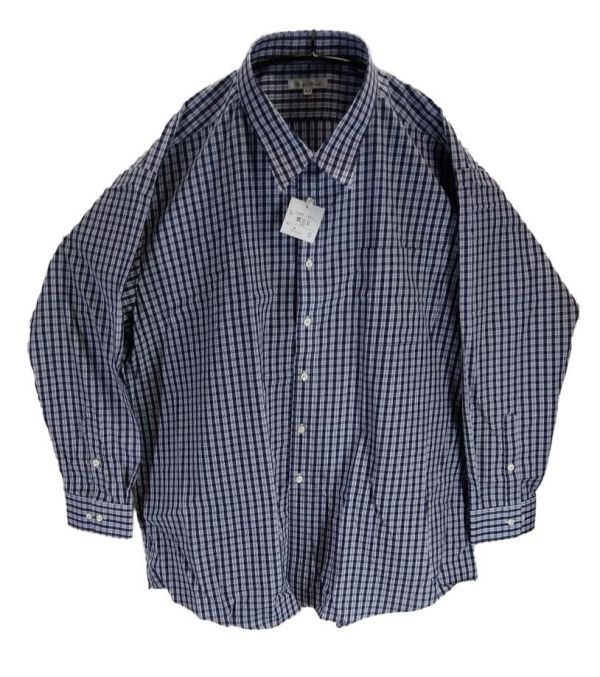 > SS2884◆ 新品 メンズ Yシャツ 長袖 左胸ポケット ボタンダウン レギュラーカラー 大きめ チェック 6LBサイズ ネイビー 送料450円