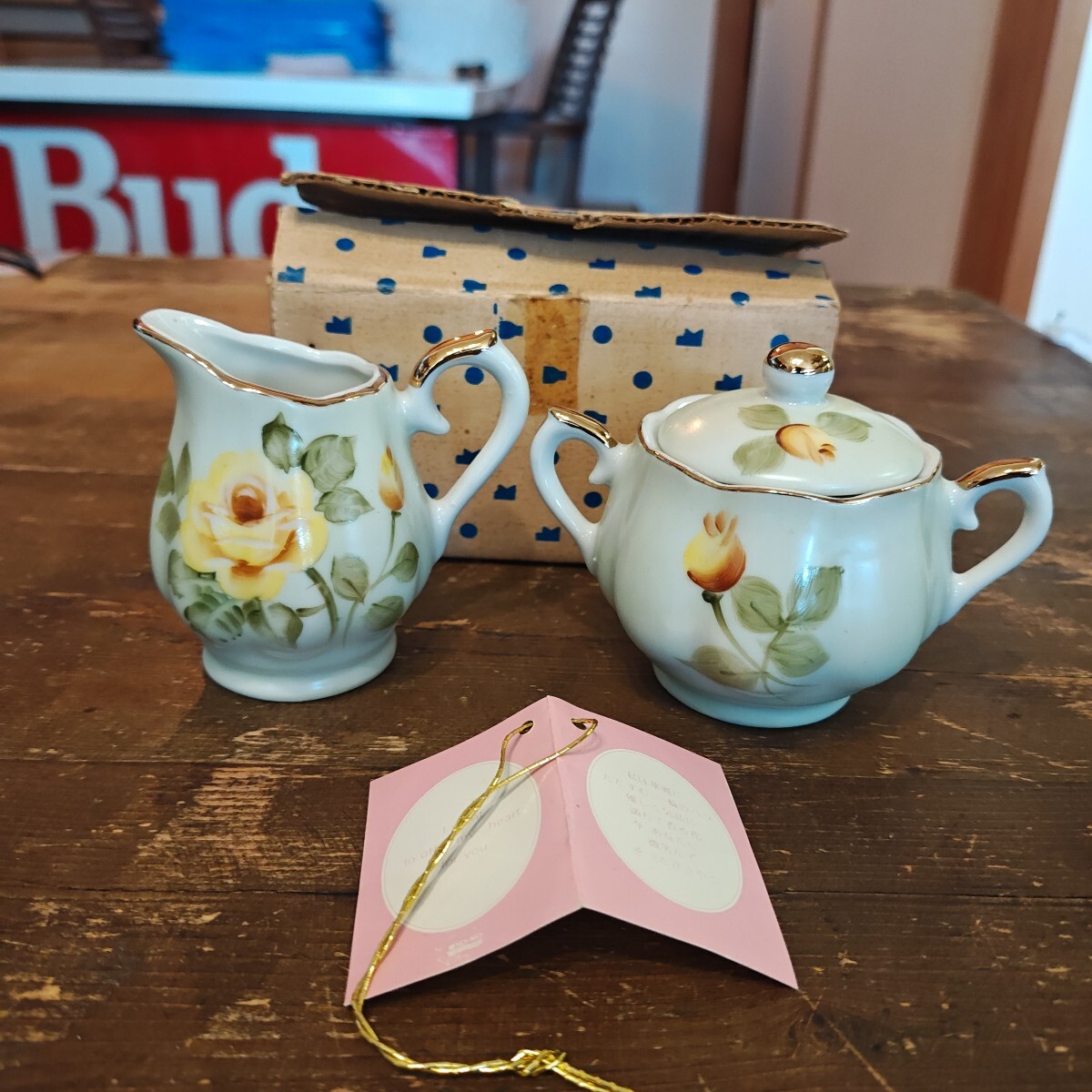 - 92912 日本古風堂 YO-KOJAPAN ヴィンテージ クリーマーとシュガー、日本製クリーマーとシュガーボウル(蓋付き)