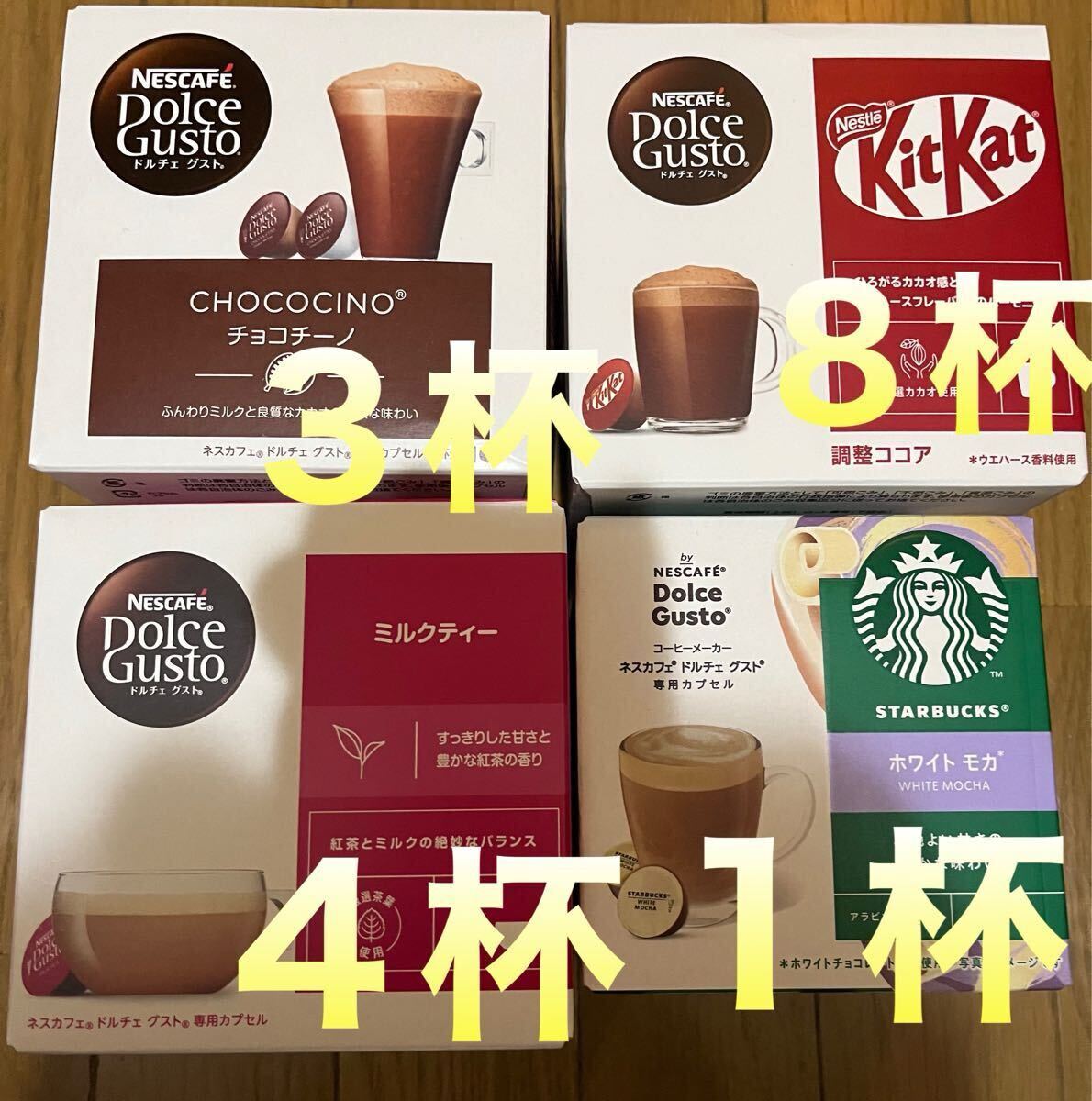 > ドルチェグスト★16杯20カプセル★アソート★キットカット★チョコチーノ★スターバックス★ホワイトモカ★ミルクティー★Nestleネスカフェ