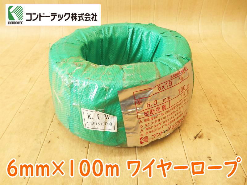 - ◆【新品・未使用】コンドーテック ワイヤーロープ 6×19 19本線6より 6mm×100m ワイヤ ロープ クレーン 巻上機 No.5349