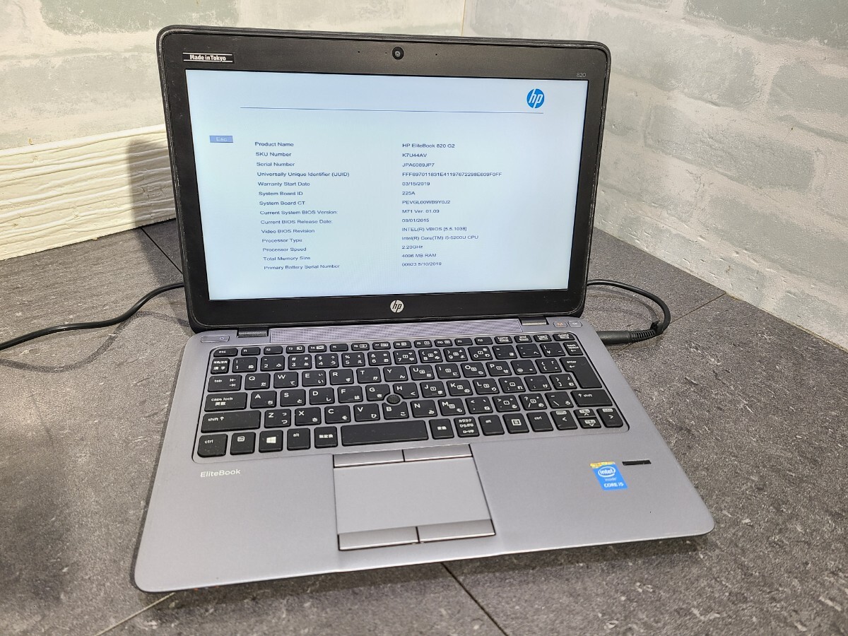> 【現状品】管2T106 hp EliteBook 820 G2 CPU core i5-5200U Bios起動OK HDD無し、メモリー4GB、バッテリー有り