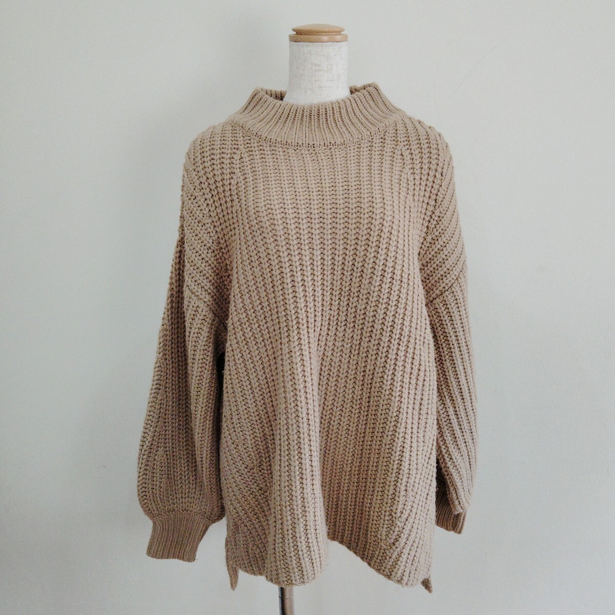 - 195/M/INGNI レディース ニット ぽわん袖 オーバーサイズ アクリル100 ベージュ