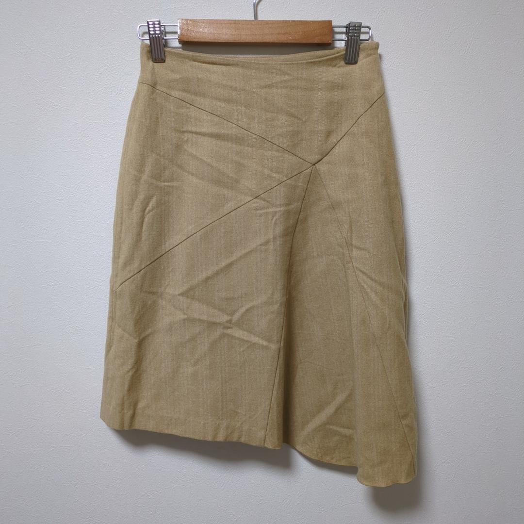 - エヴー(32)ヘムスカート*ひざ丈*ウール100%*裏地*無地*シンプル*茶色