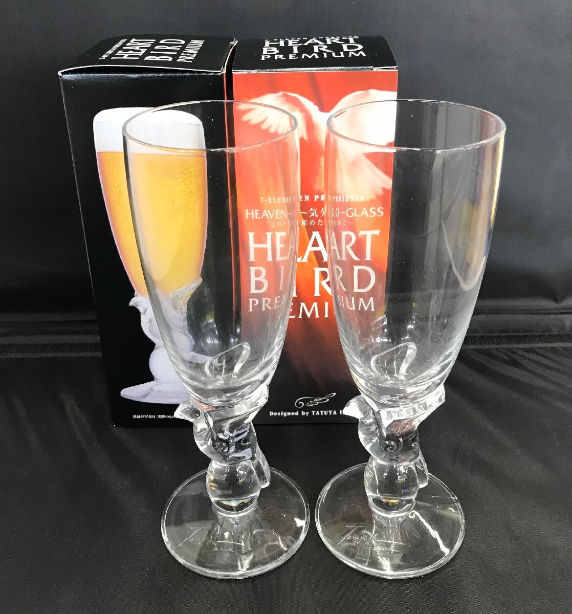 - 【未使用品】石井竜也 オリジナルビアグラス HEAVEN~気分~GLASS HEART BIRD PREMIUM 2点セット セブンイレブン 景品 [3] (管:059102) 60