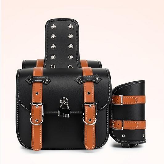 - 新作サイドバッグ 左右2個セット バイク用シートバッグPU 南京錠付き防水鍵 ケース 小物入れ ツーリング 33*25*13cm (ブラウン)