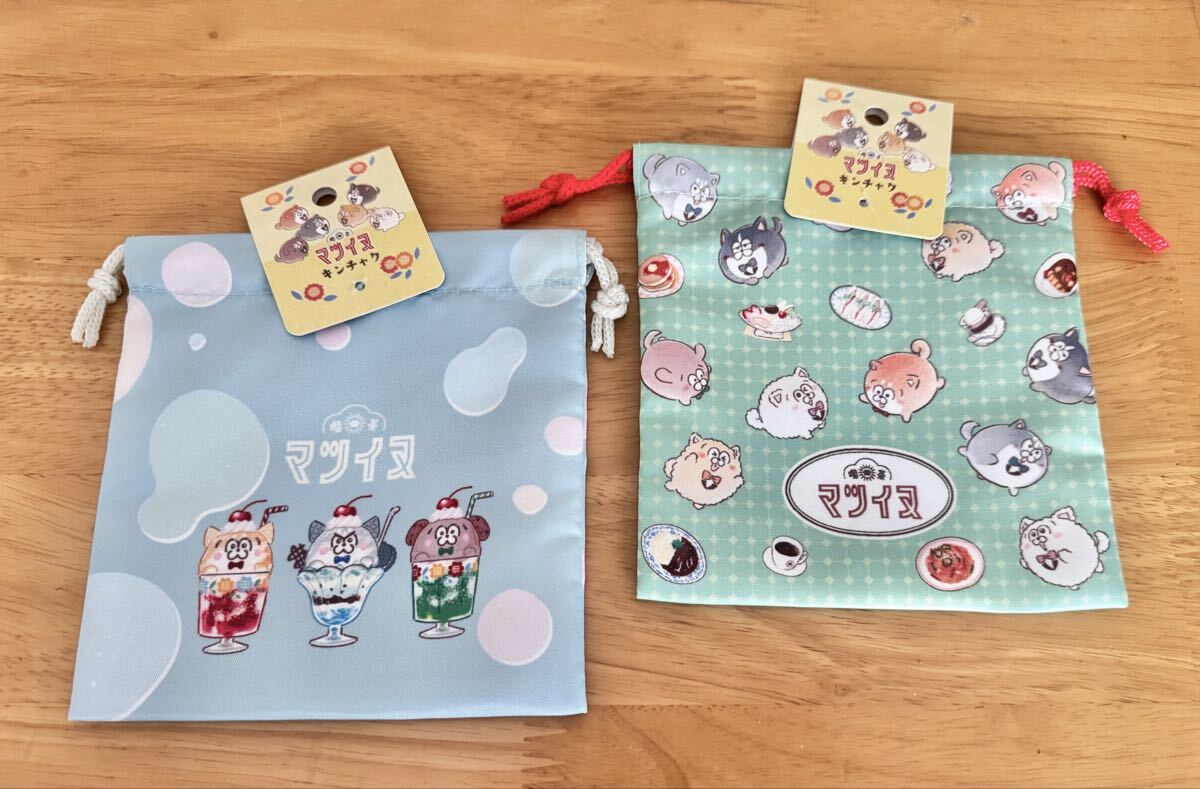 - おそ松さん 松犬 マツイヌ レトロ喫茶柄 ミニサイズ巾着袋 2種類セット タグ付未使用品