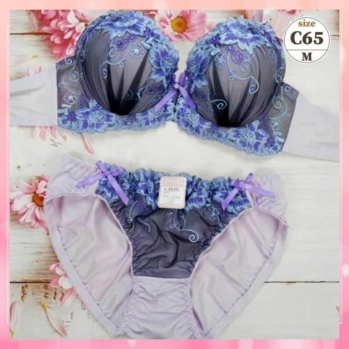 > Zc6504◎新品 ブラショーツセット【C65/M】下着 ランジェリー 丸胸 シャクヤクブルー刺繍 紫