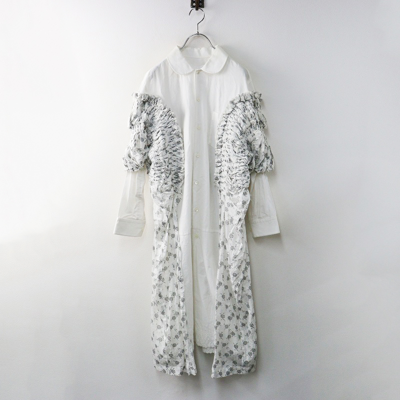 - AD2021 タオコムデギャルソン tao COMME des GARCONS シャーリングドッキング丸襟シャツワンピース S\ホワイト 刺繍【2400014623345】
