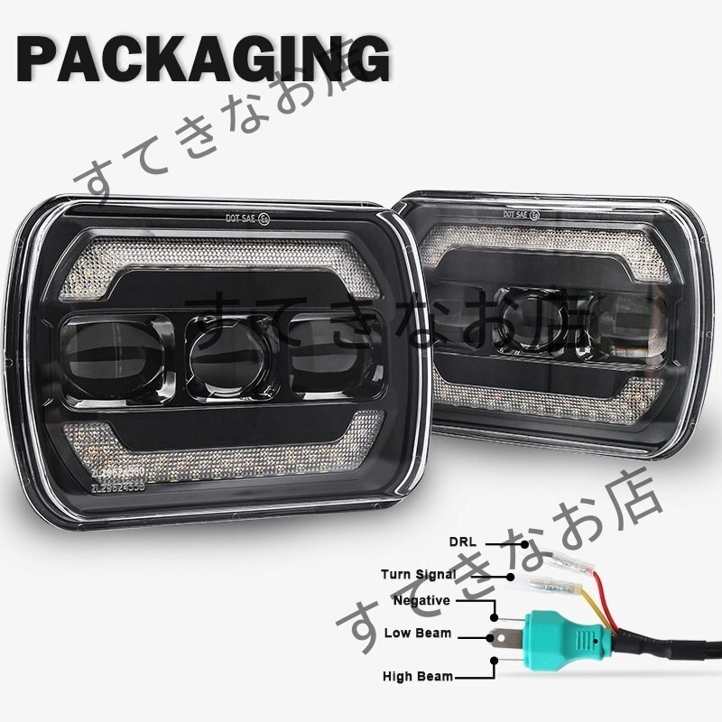 - 汎用5×7 LED ヘッドライト S13 SW20 AE86 KP61 JZA70 プラド B310 ハイラックス サニトラ FC3S 180SX 角型 角目 ウィンカー付き