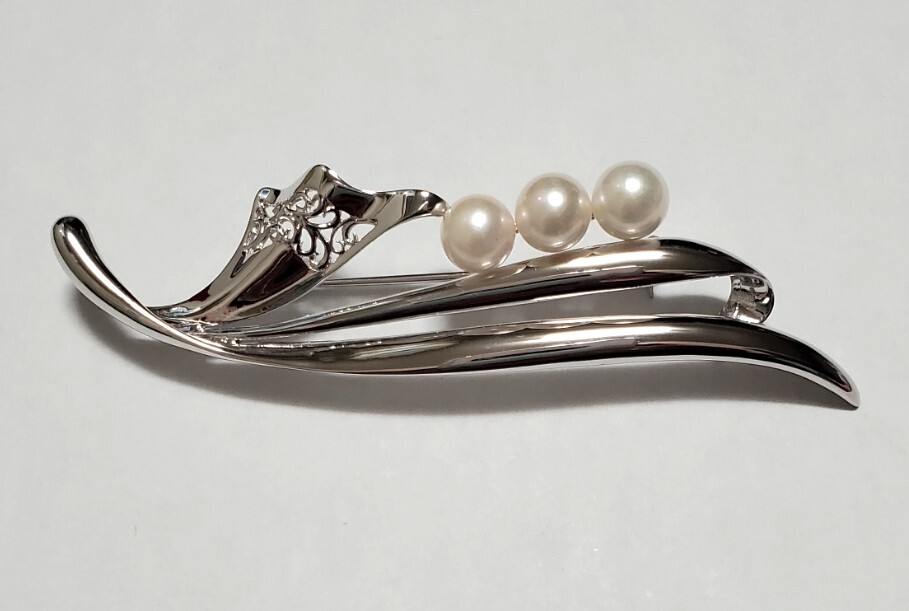 - SILVER シルバー刻印 本真珠 ブローチ レディース アクセサリー 8,2g 美品