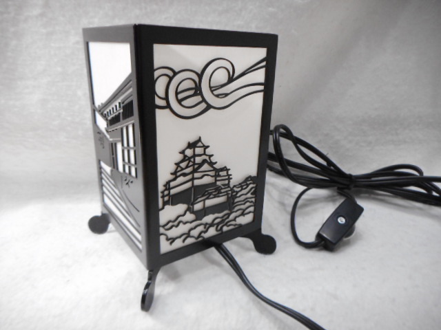 - ◇昭和レトロ シェードランプ lamp shade 影絵 城 シャチホコ テーブルライト アンティーク 保管品 箱無し