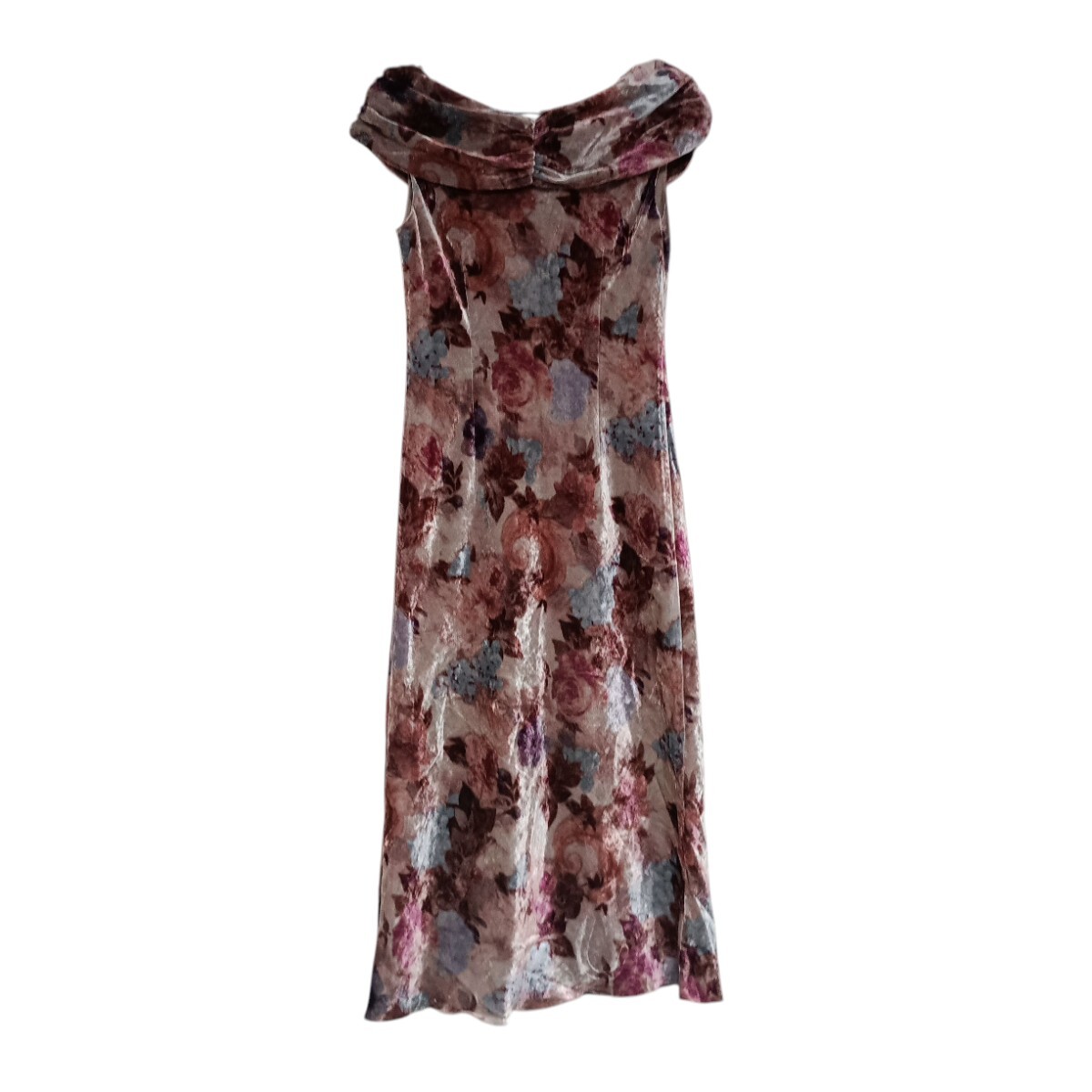 - 美品☆STRAWBERRY-FIELDS・グラッセ☆オフショルベロア花柄ロングドレスワンピース・パーティー・結婚式・キャバ ノースリーブ 総柄