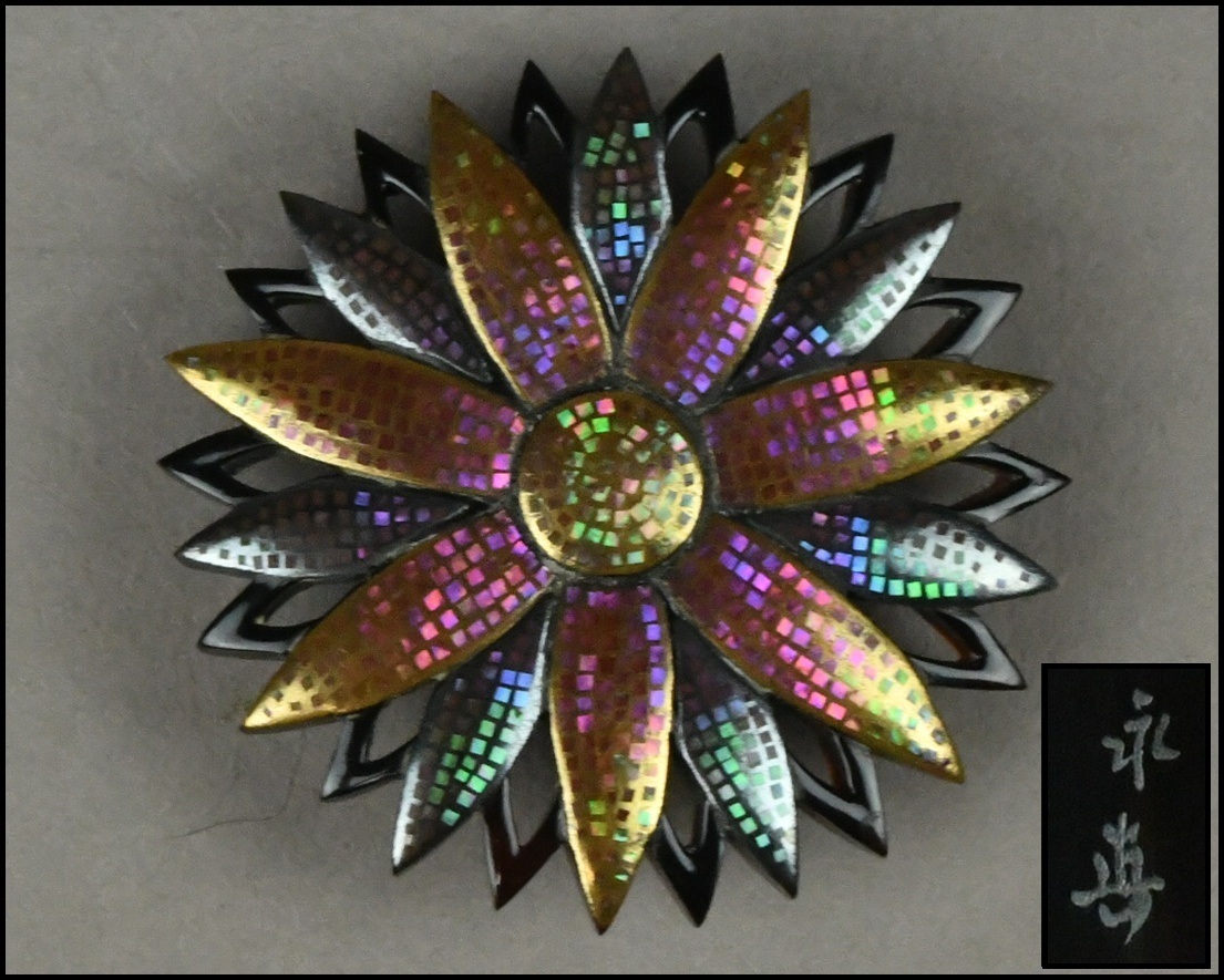 - 【NNK】漆塗【永眞】螺鈿細工 帯留 和装小物 装身具 D7-909-12