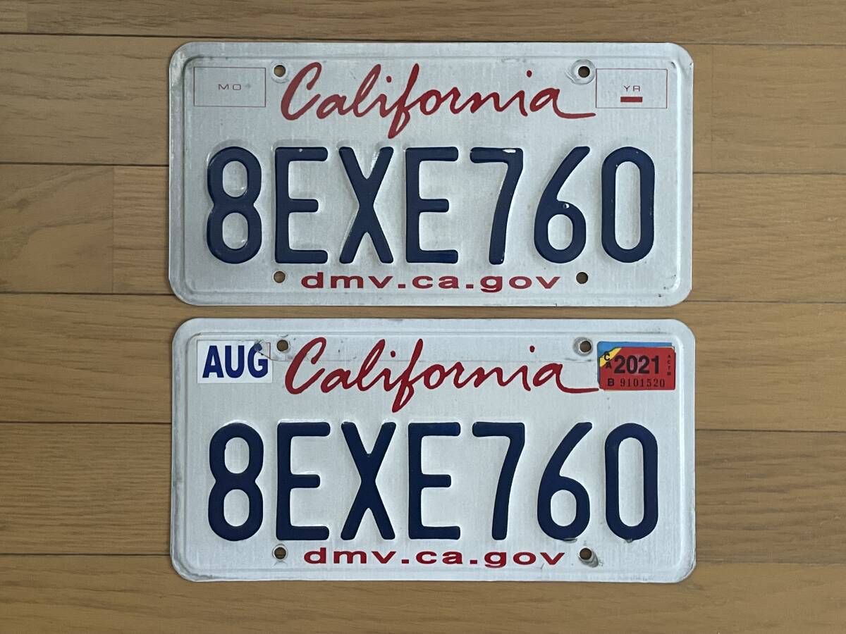 > カリフォルニア ライセンスプレート 8EXE760 2枚セット USDM 世田谷ベース 米国トヨタ シボレー フォード ロサンゼルス ナンバープレート