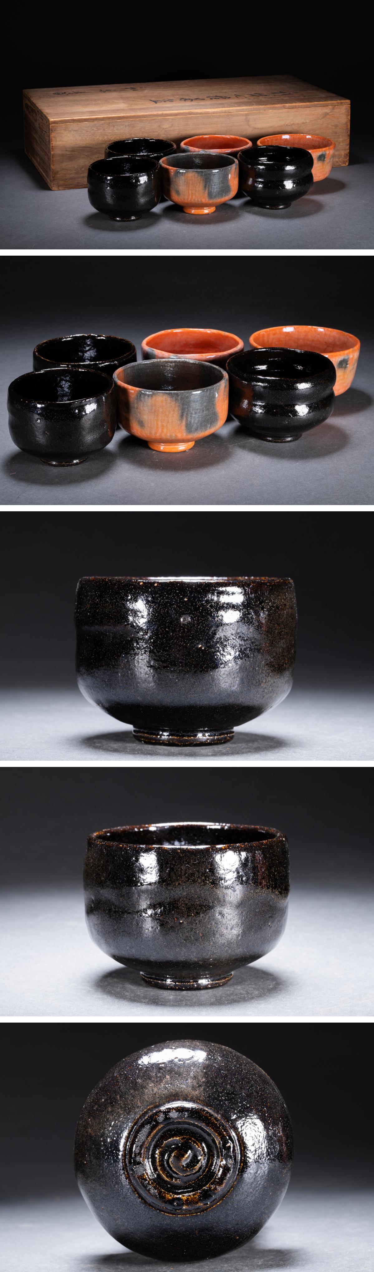 - 【雲錦】某有名オークション購入 時代物 京焼「長次郎寫・七種類茶碗」和楽造 一個欠品 古美術 時代コレクションWK9-135S1