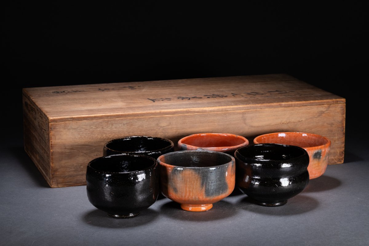 > 【雲錦】某有名オークション購入 時代物 京焼「長次郎寫・七種類茶碗」和楽造 一個欠品 古美術 時代コレクションWK9-135S1