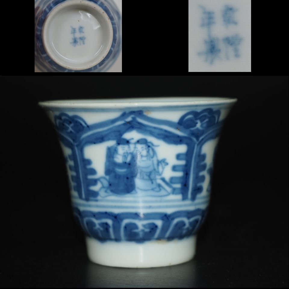 - 【金富士】清末『乾隆年製』銘 染付/青花杯 口径6.1cm 中国古玩骨董 検/明代清代乾隆雍正嘉慶咸豊同治