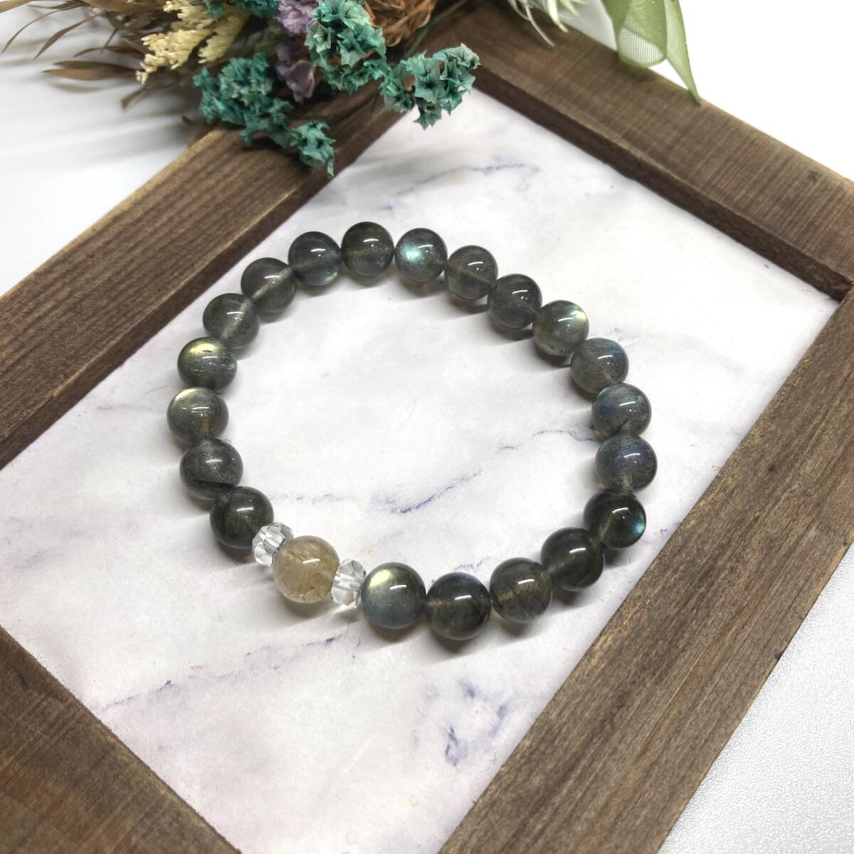 - ラブラドライト&ルチルクォーツ ブレスレット パワーストーン レディース 女性 金運 仕事運 開運 天然石ブレス