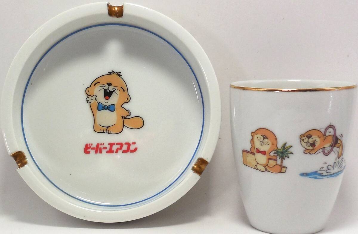 - ビーバーくん beaver ビーバーエアコン 陶器 湯呑み カップ 灰皿 2点セット
