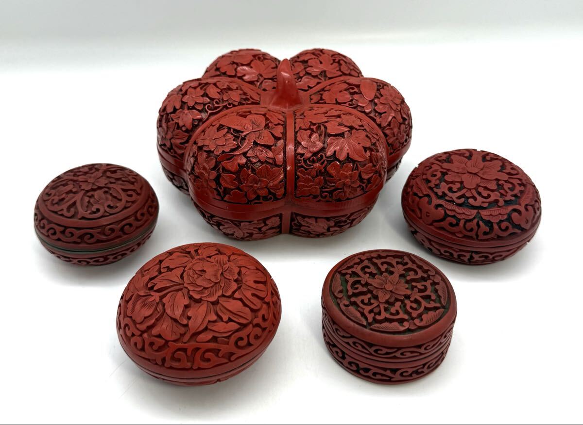 - 堆朱 香合 中国古玩 中国美術 茶道具 漆器 唐物 香道具 漆器 時代物 唐物 古美術品 剔紅