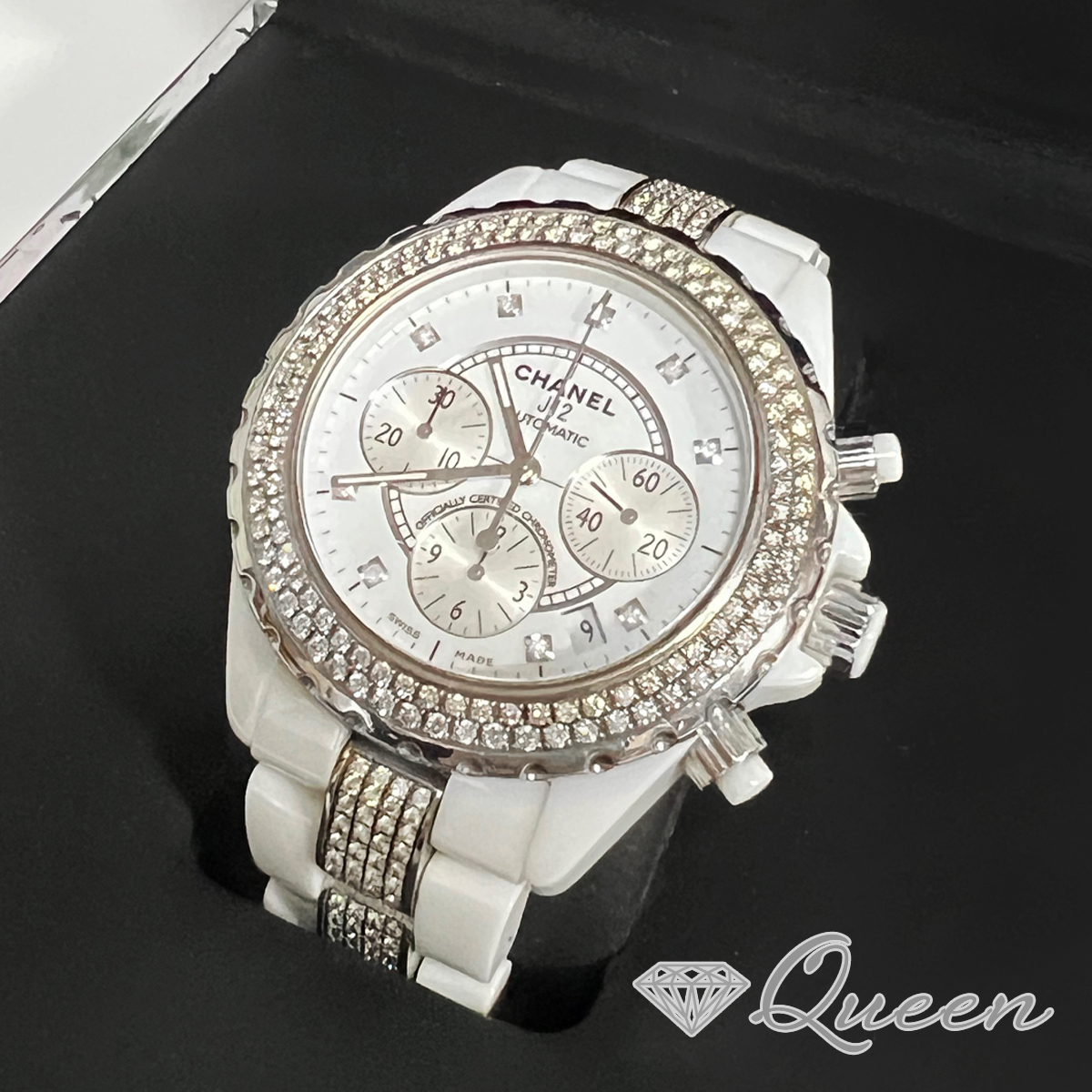 > CHANEL シャネル J12 クロノグラフ H2009 フルダイヤ ホワイトセラミック 白 41mm 腕時計