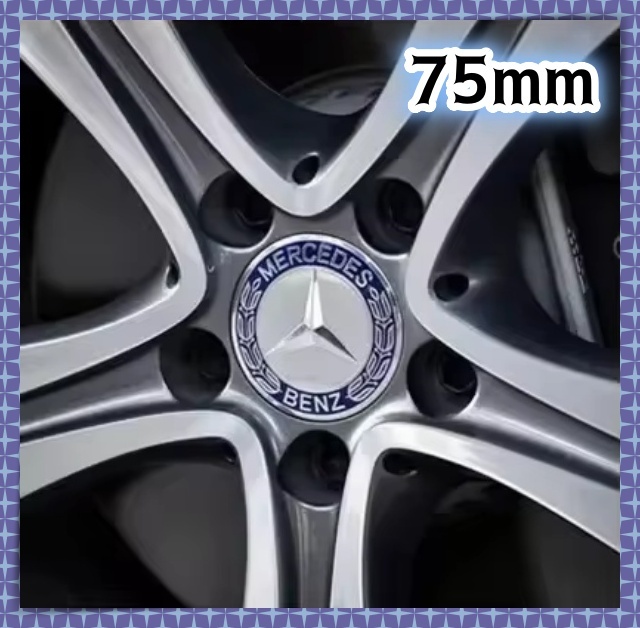 > 4個 Mercedes Benz メルセデス ベンツ ホイールセンターキャップ 75mm ホイールカバー ハブキャップ 青 銀 ネイビー シルバー 社外