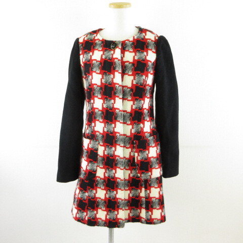 - アナスイ ANNA SUI DOLLY GIRL ノーカラーコート 長袖 黒 赤 2 *T440 レディース