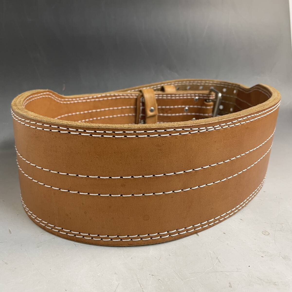 > FNY32/76 希少 アメリカンドリーム トレーニングベルト 内径110~138㎝ ボディビルタイプ American dream レザー 2ピン 現状品 中古◎