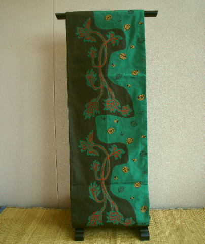 - 掘り出しました!7900円【正絹】慶長エメラルド袋帯【中古品】
