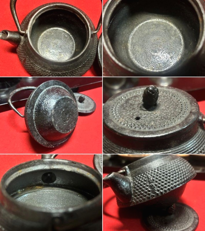 - ◇煎茶器【九谷焼「「九谷庄三」「九谷」」〈茶器 銘有十客、湯さまし・宝瓶 揃い/美しい木目の刳り抜き茶櫃 鉄瓶】煎茶道具 Q09437