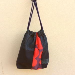 - 【入学、入園!】500円ネイビーフラワーパッチワーク巾着袋 【手作り小物】