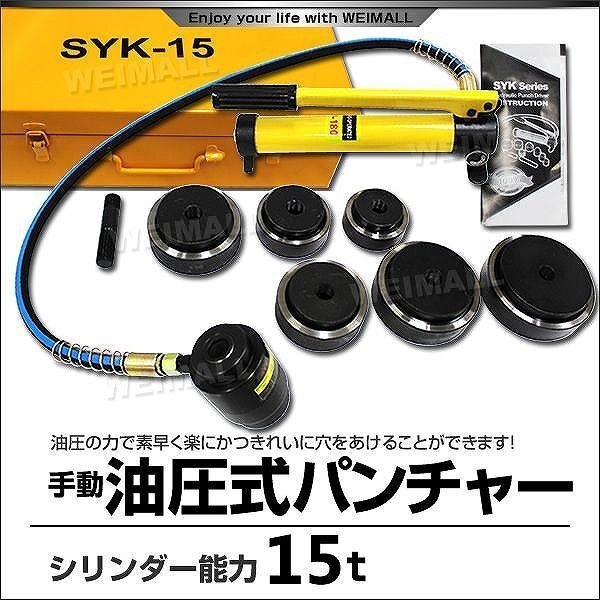 - 油圧パンチャー 手動 油圧パンチ 15ton ダイス6個セット付 業務用