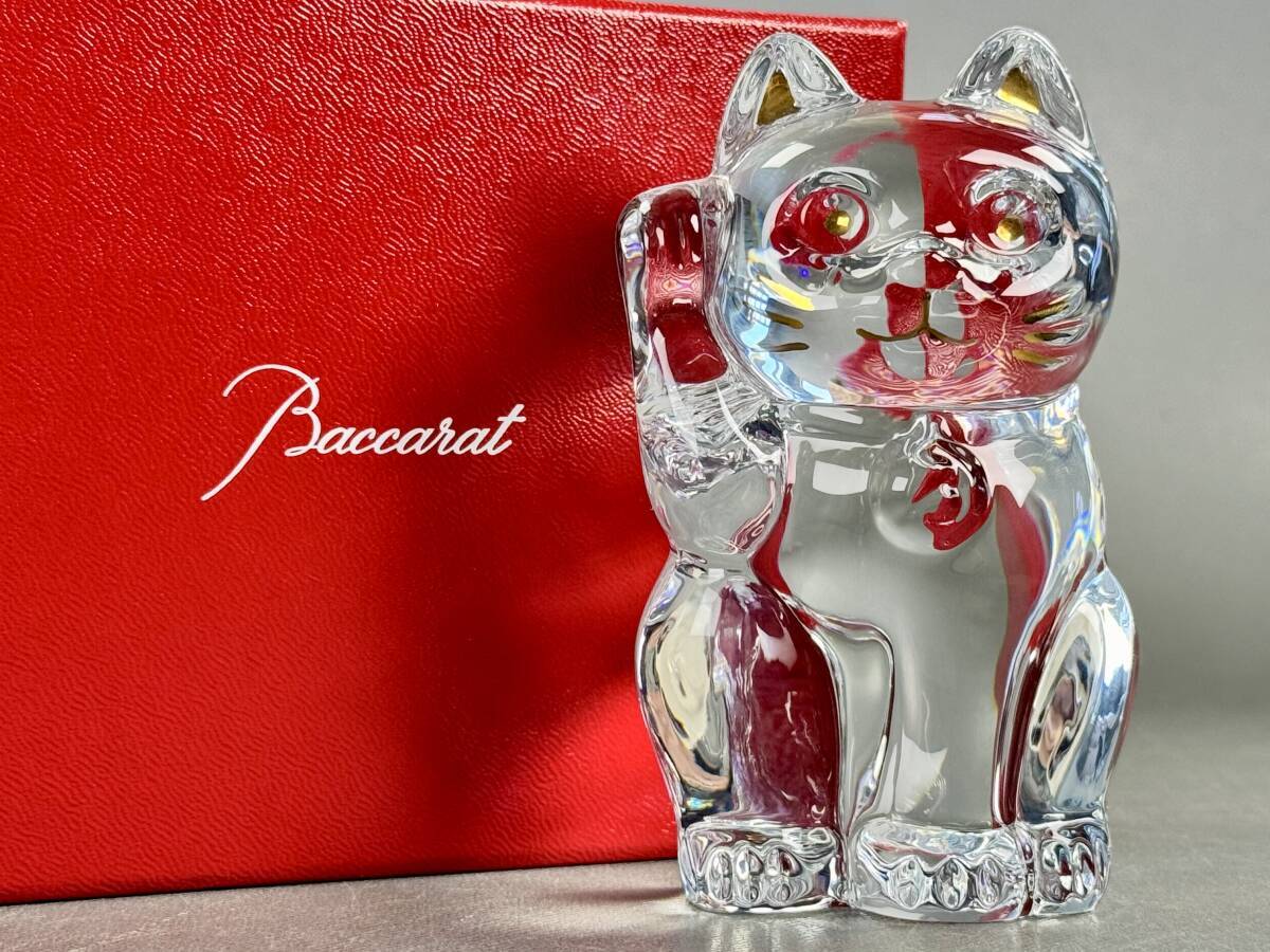 > 【偲】Baccarat バカラ クリスタル まねき猫 ゴールド フィギュア 元箱 置物 インテリア ラッキーキャット 招き猫 高さ約10㌢ r-490