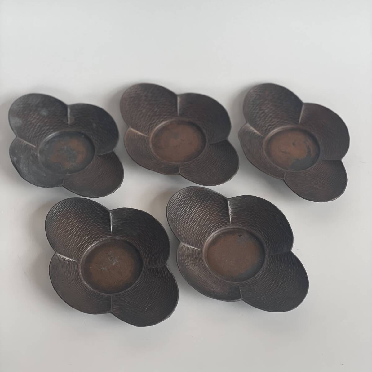 - 清順記号 古銅 古錫 木瓜 雲形 茶托 5客 茶卓 小皿 中国 古玩 唐物