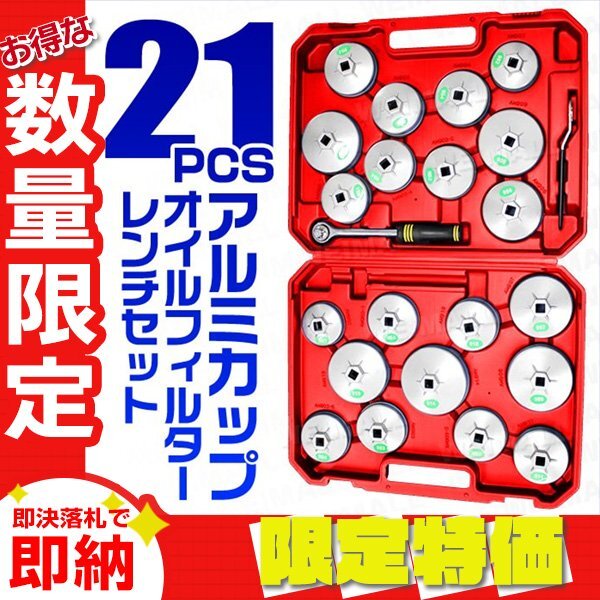 > 【限定セール】アルミカップ オイルフィルターレンチ 65~101mm 21pcセット ケース入り 国産車 輸入車 対応 メガネスパナ ラチェットレンチ