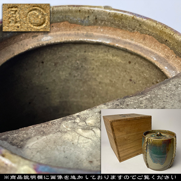 - 上野焼 時代 青緑釉水指 在銘 底印有 古上野焼 硯山箱付