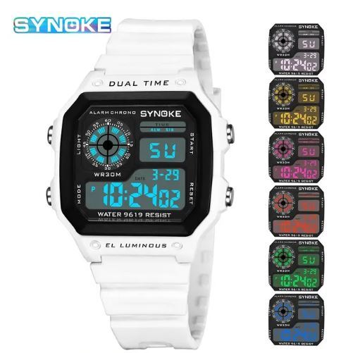 - 送料無料 未使用品 白色 ホワイト SYNOKE スポーツデジタル 防水 ユニセックス デジタル腕時計 7種のバックライト Transparent white
