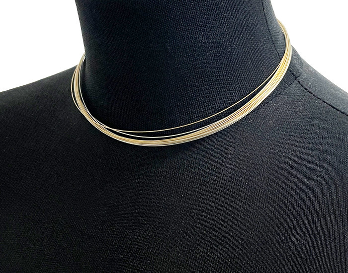 > 新健勝苑 SHINKENSHOEN ステンレス ワイヤー ネックレス チョーカー 20連 ゴールド×シルバーカラー 金色 銀色 総重量4.8g 品質保証書付