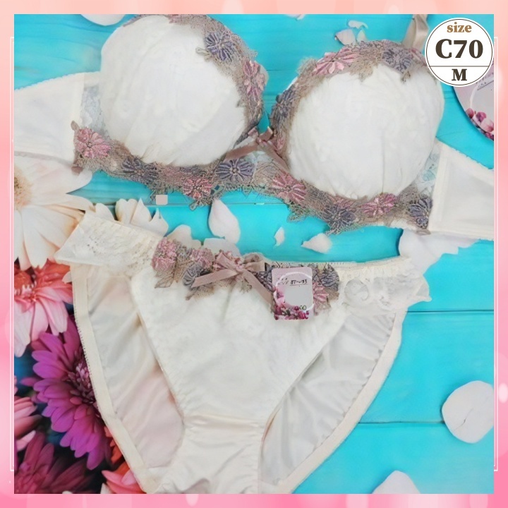 > Zc7033◎新品 ブラショーツセット【C70/M】下着 ランジェリー 丸胸 カラフルリトルフラワー アイボリー