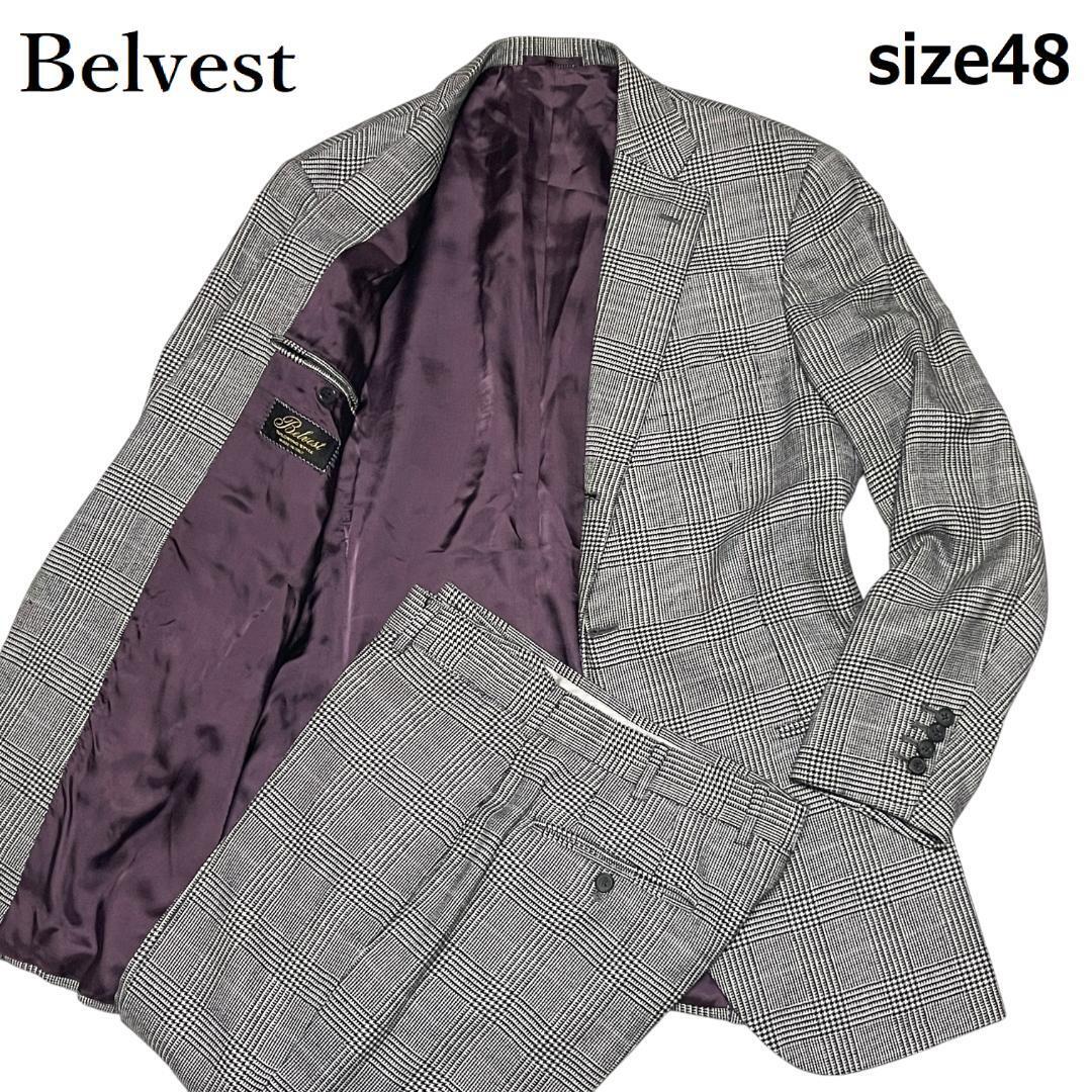 - Belvest ベルベスト セットアップスーツ 48 L グレンチェック グレー バンブー ウール ジャケット スラックス