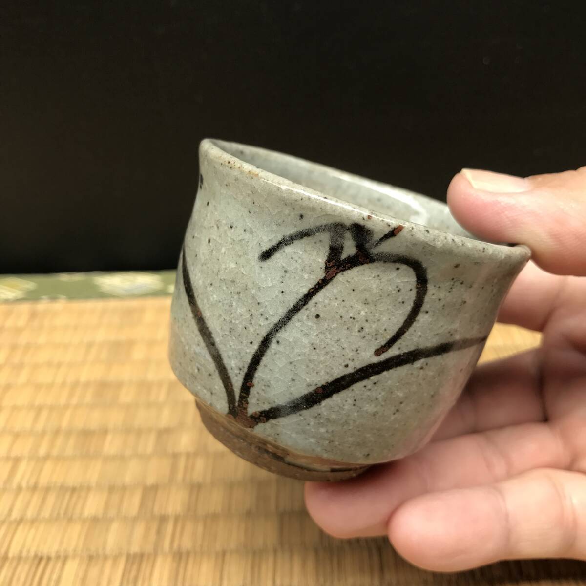 - 草花文のぐい呑み(ロ)魯山人銘印?酒器 猪口 小鉢 盃 杯 珍味入れ(R71001_A)
