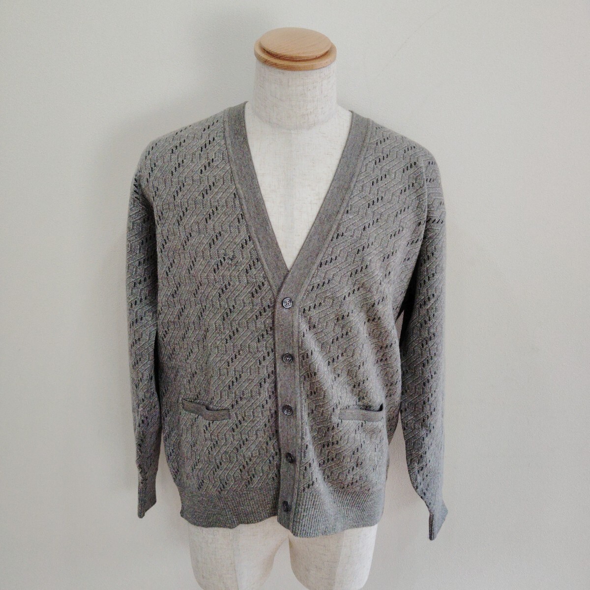- 1001/L/RENOWN メンズ カーディガン ニット Vネック 柄 グレー