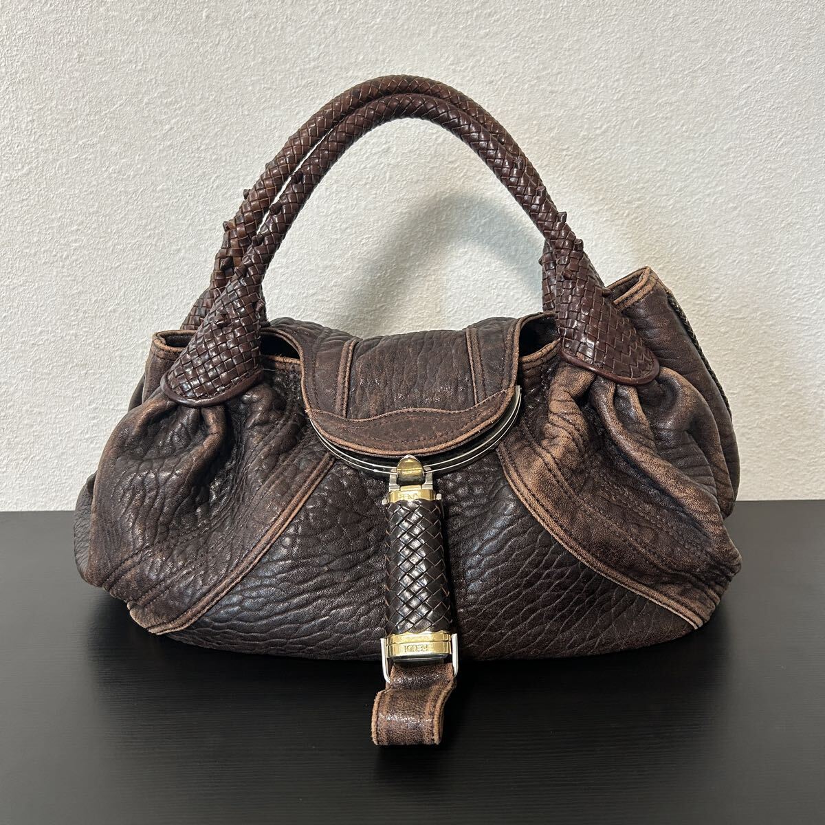- FENDI フェンディ スパイ ハンドバッグ レザー ダークブラウン 茶