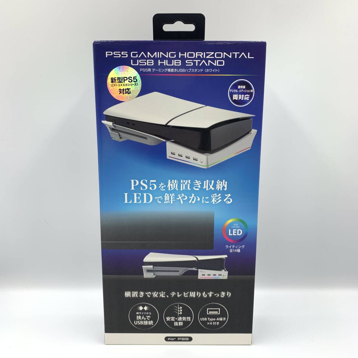 > PS5 slim(CFI-2XXXシリーズ)用 ゲーミング横置きUSBハブスタンド ホワイト 動作確認済 タバコ臭 アンサー