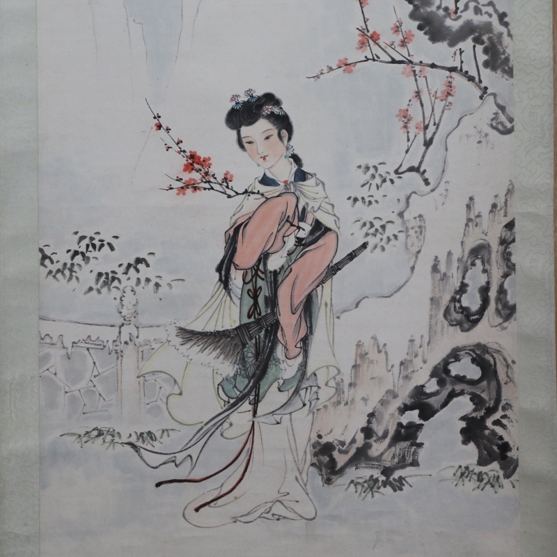 - ★中国美術 美人画 掛軸 肉筆 紙本 保存箱付き 女性 人物★