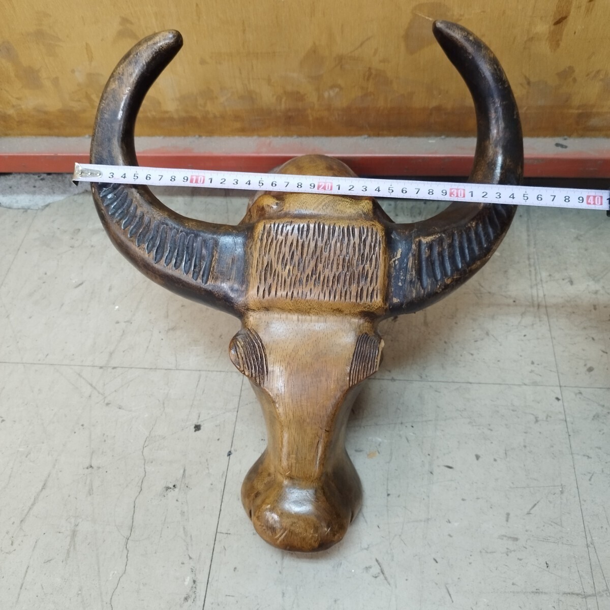 - 戸06a バッファロー 水牛 オブジェ 壁掛け 幅約35cm インテリア 木製 大きい ハンドクラフト 工芸 木工 伝統 ハンドメイド フィリピン 海外