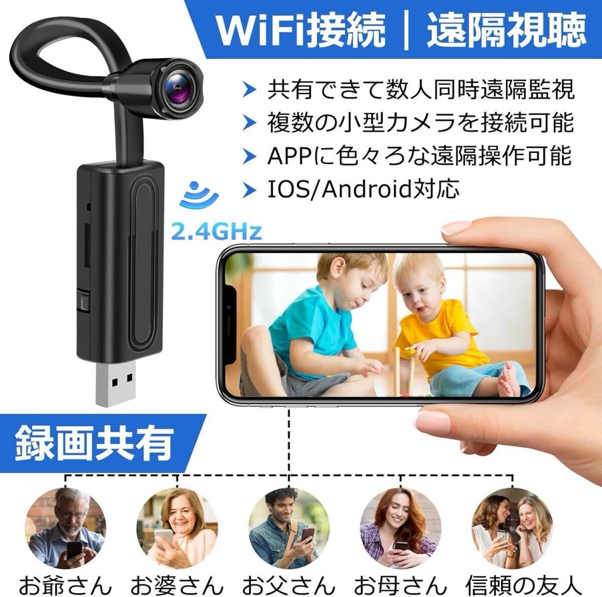 - 見守りカメラ ベビーモニター ペットモニター 小型カメラ USB WiFiカメラ スマホ連携 護身用 上書き録画 暗視録画 室内 室外 647